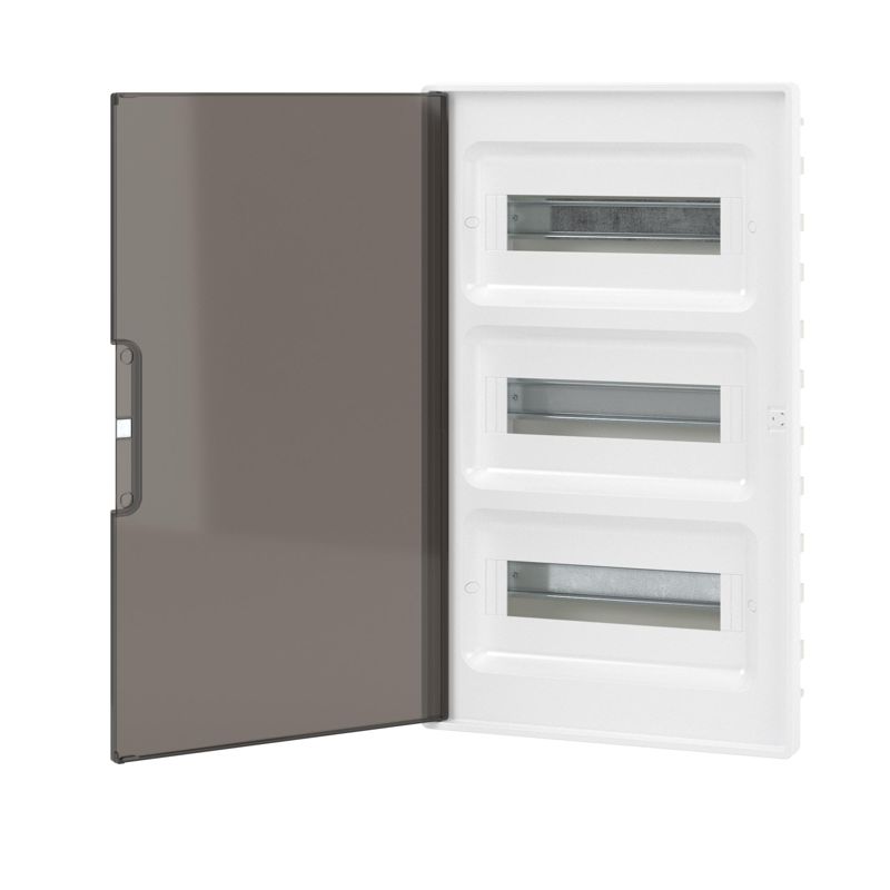 F36B1WD | Щиток встраиваемый FRAME 36мод с тонированной дверцей с 4 шинами PEN (2шт на 8 отверст. и 2шт на 10 отверст.) бел. DKC