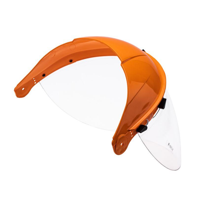 Для защиты головы, глаз и лица спереди, сверху, с боков от твердых частиц, искр и брызг неразъедающих жидкостей. Ударопрочный желтый козырек. Экран: поликарбонат (190х338,9 мм). Головное крепление Standart с мягким обтюратором.