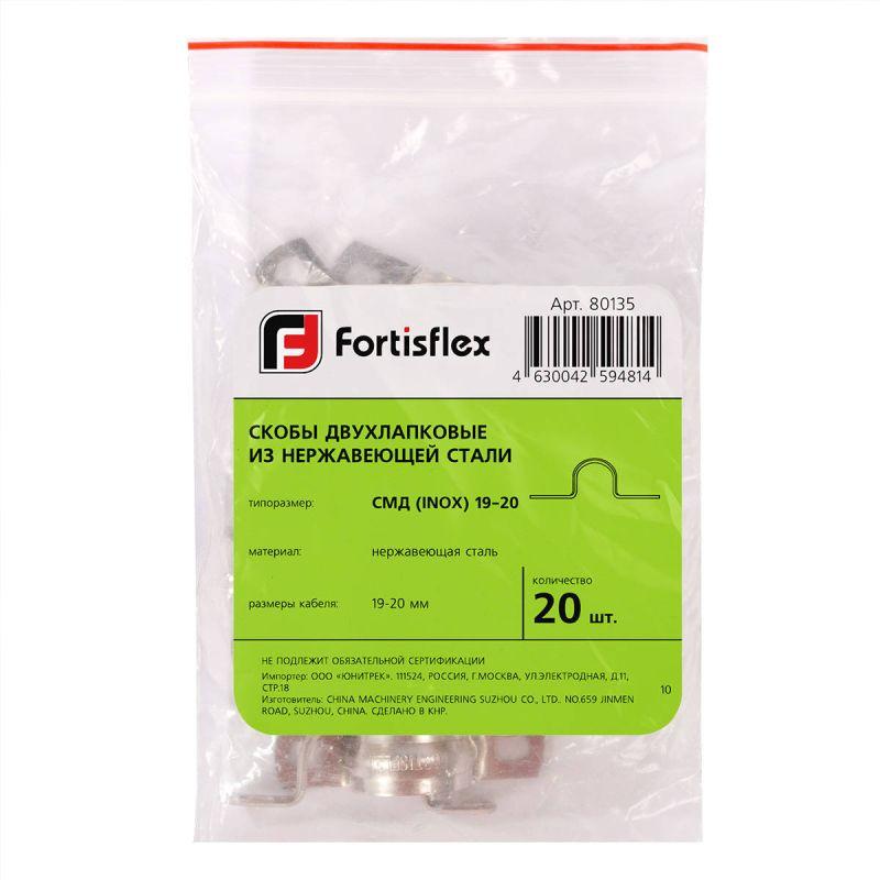 Скоба крепежная двухлапковая СМД(INOX) d25-26мм метал. (уп.20 шт) Fortisflex 80137