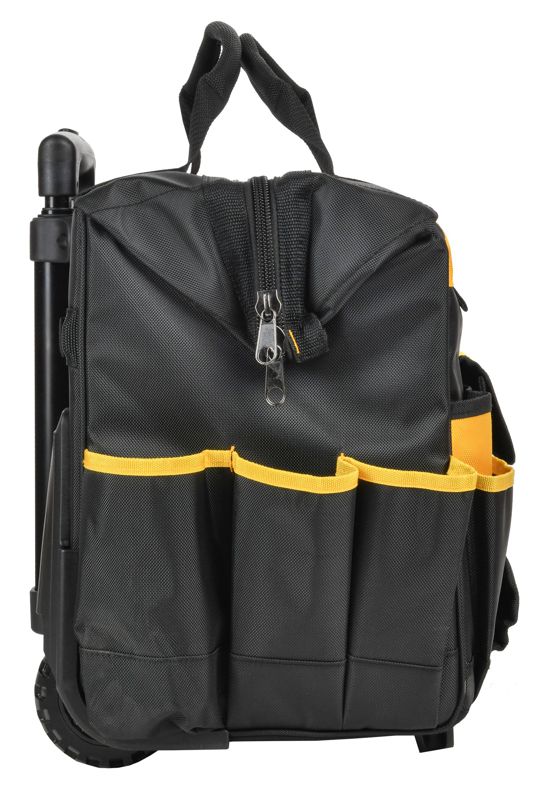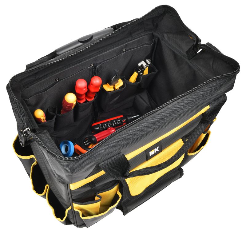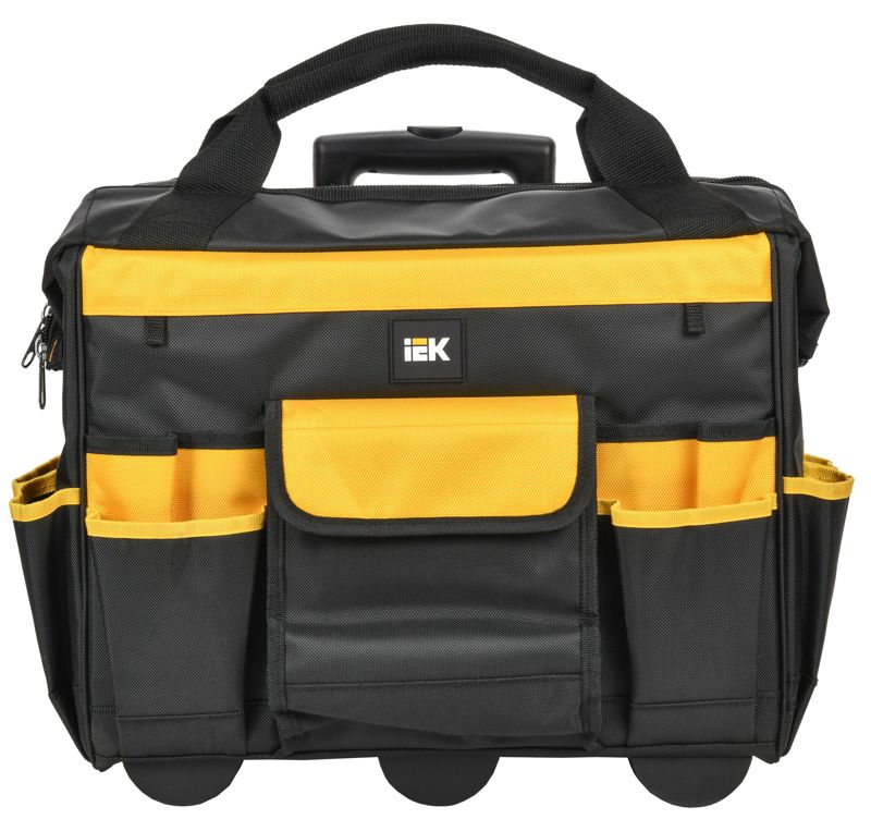 Сумка монтажника на колесах BG-40 IEK предназначена для хранения и удобной транспортировки ручного инструмента и расходных материалов к месту работы. Сумка изготовлена из высококачественного полиэстера 600D Оксфорд и выдерживает нагрузку до 30 кг. В сумке предусмотрены внутренние и наружные карманов для удобного размещения инструментов и расходных материалов. Легкое перемещение обеспечивают пластиковые колеса большого диаметра с телескопическая ручка. Застежка-молния с крупными звеньями обеспечивает сохранность содержимого. В ассортименте IEK есть полезный аксессуар – вкладыш-органайзер BG-08, позволяющий хранить инструмент в образцовом порядке и обеспечивает легкий доступ к самому необходимому.