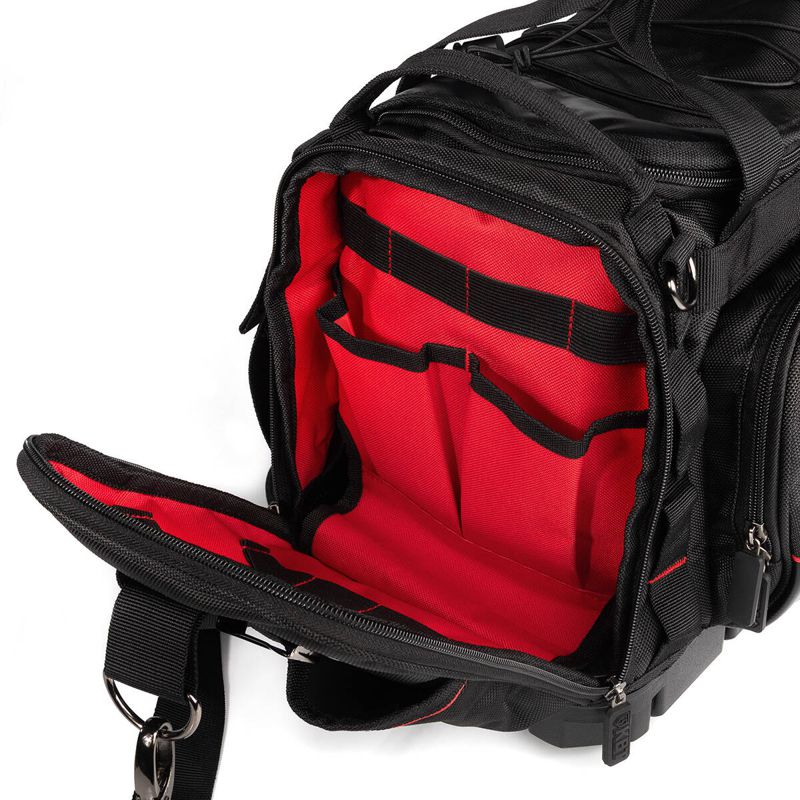 • 2 боковых отделения на молнии с внутренними карманами и крепежными элементами из эластичной ленты