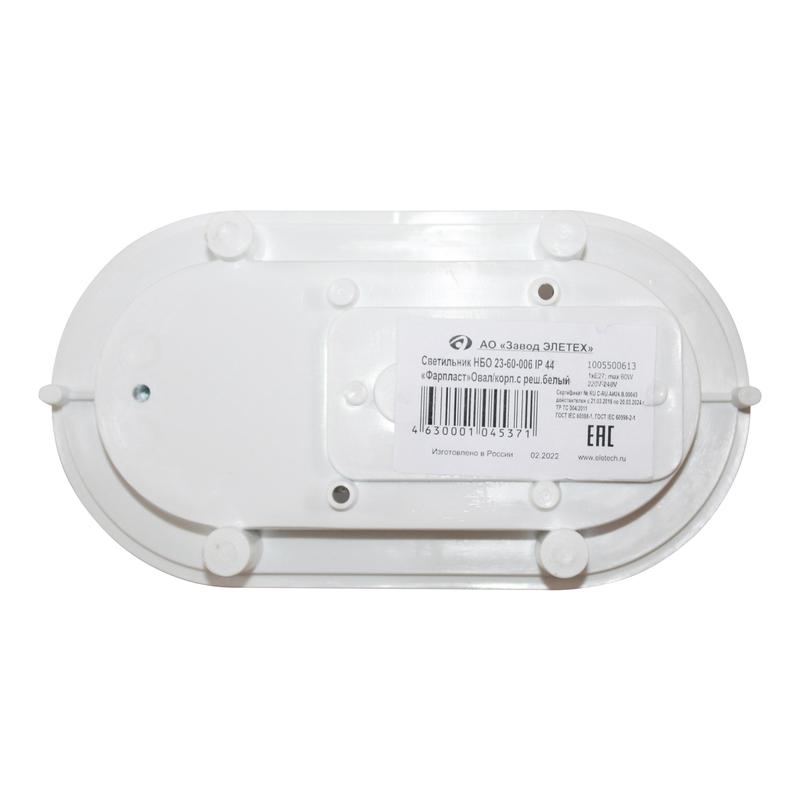1005500613 | Светильник НБО 23-60-006 "Фарпласт" овал 1х60Вт E27 IP44 корпус с решеткой бел. Элетех