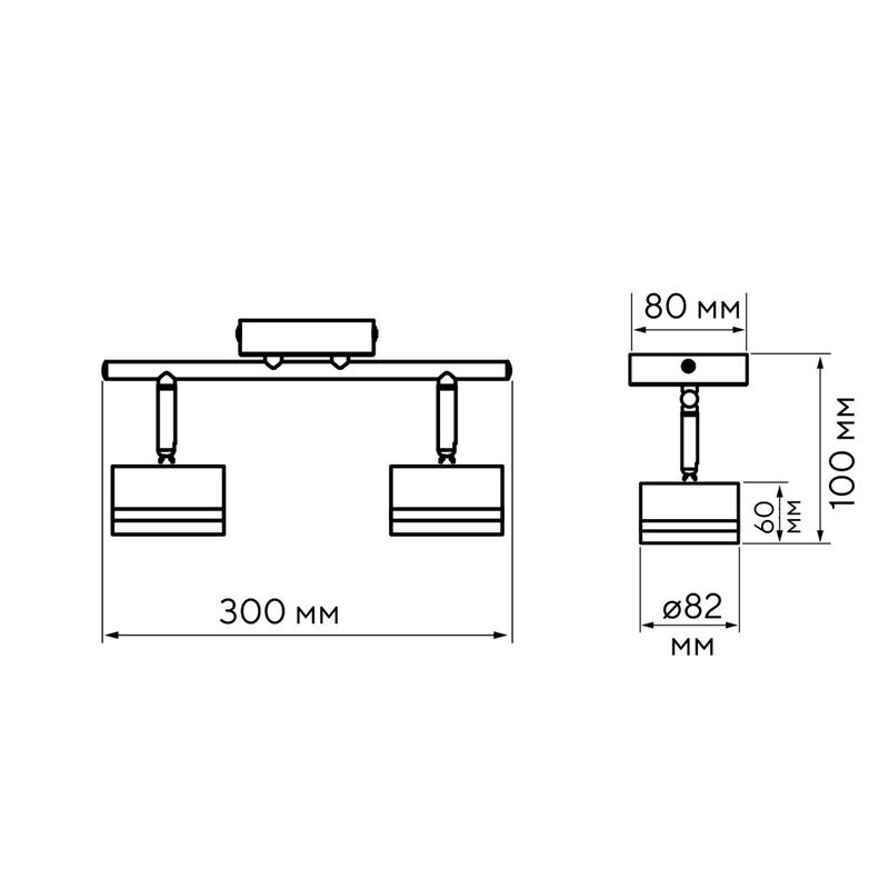 5066809 | Светильник PCL-0702 max 20Вт (каждая лампа) 2xGX53 IP20 230В BL настен./потолочн. декор. под лампу JazzWay
