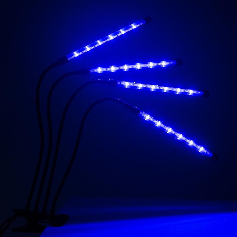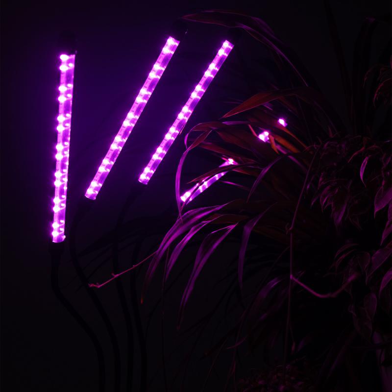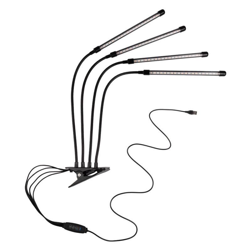 Светильник состоит из четырех отдельных фитоламп на гибких держателях, подключается к сети питания с помощью USB-кабеля со встроенным пультом управления (входит в комплект).
