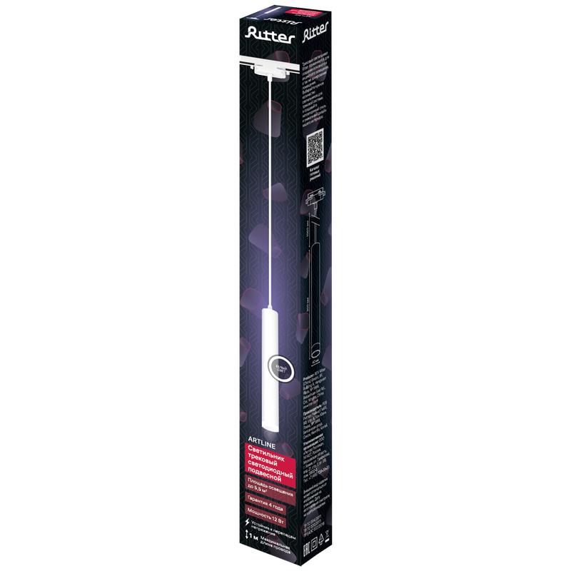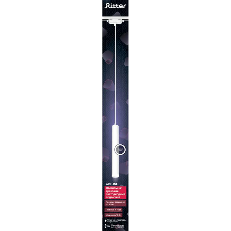 Светильник трековый подвес светодиодный ARTLINE 40х40х300мм 12Вт 840Лм 4000К 230В алюм./пл 5.5кв.м бел. Ritter 59708 1