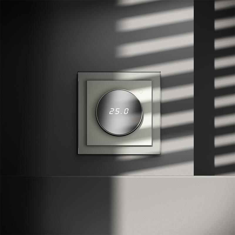 Место установки. Терморегуляторы Voltum предназначены для регулирования температуры теплого пола. Актуальны как в городских квартирах, так и в загородных дачных домах без центрального отопления. Корпус. Дизайн терморегуляторов Voltum сочетается со стилем остальных электрических устройств компании. Они совместимы со всеми рамками. Материал внешних декоративных элементов — поликарбонат. Конструктивные особенности. Терморегуляторы работают с любыми типами теплых полов и рассчитаны на нагрузку до 3500 Вт. Устройства оснащены светодиодной индикацией режима и дисплеем, на котором отображается температура поверхности пола. Красный индикатор — «подача питания на нагревательный кабель (идет процесс нагрева)», отсутствие индикации — «заданная температура достигнута». В течение 15 минут после нагрева терморегулятор переходит в интеллектуальный «спящий режим», уменьшая яркость подсветки цифр и сокращая энергопотребление. Регулировка осуществляется вращением панели управления. Терморегулятор поставляется в комплекте с механизмом из пластиковой накладки и датчиком температуры.