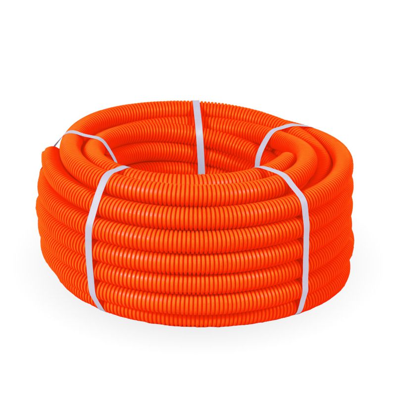 PR.022541о | Труба гофрированная ПНД тяжелая d25мм с протяжкой 750 Н безгалоген. (HF) оранж. (уп.50м) Промрукав