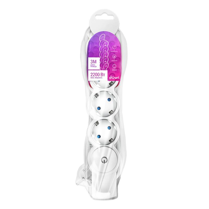Удлинитель 4х3м с заземл. 10А IP20 ПВС 3х0.75 с выкл. защ. шторки REV 32014 4