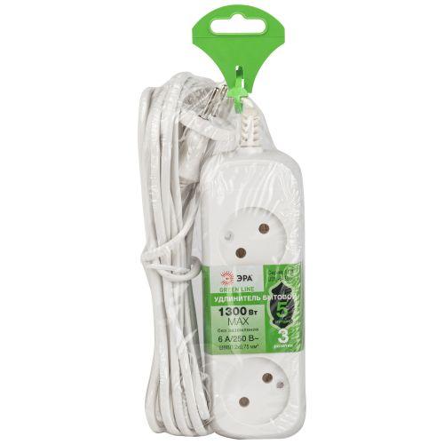 Удлинитель электрический UDL-6-350 Greenline 3 розетки без заземления 5м ШВВП 2х0.75кв.мм Эра Б0065070
