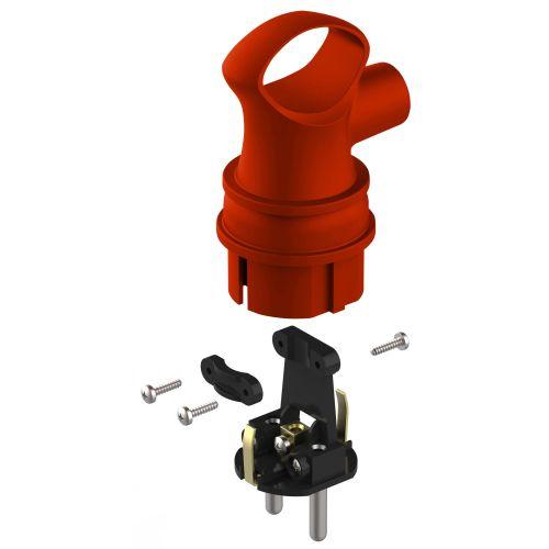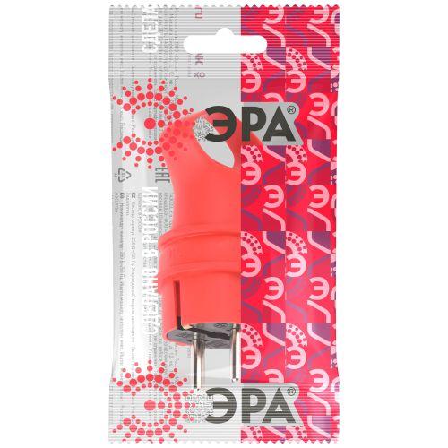 Угловая красная каучуковая вилка с кольцом из серии каучуковых разъёмов ЭРА российского производства. Имеется аналог в чёрном цвете. Рассчитана на нагрузку до 16 А и позволяет подключать кабель КГ сечением до 3x2.5 мм2. Вилка с заземлением.