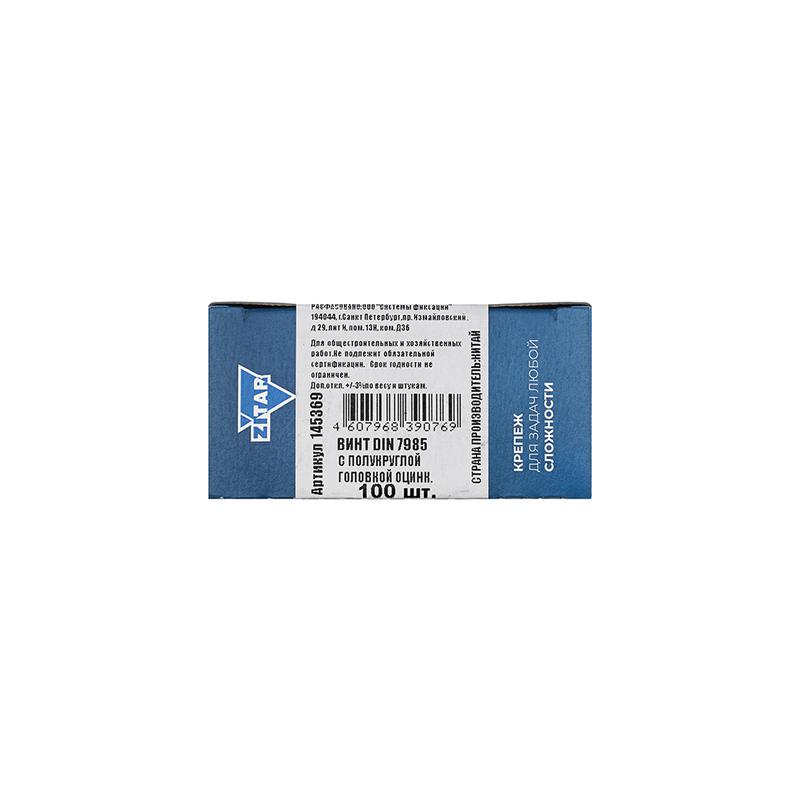 145369 | Винт с полукруглой головкой М6х10 DIN 7985 оцинк. (уп.100шт) Zitar