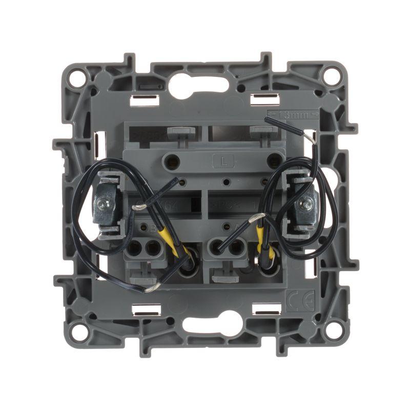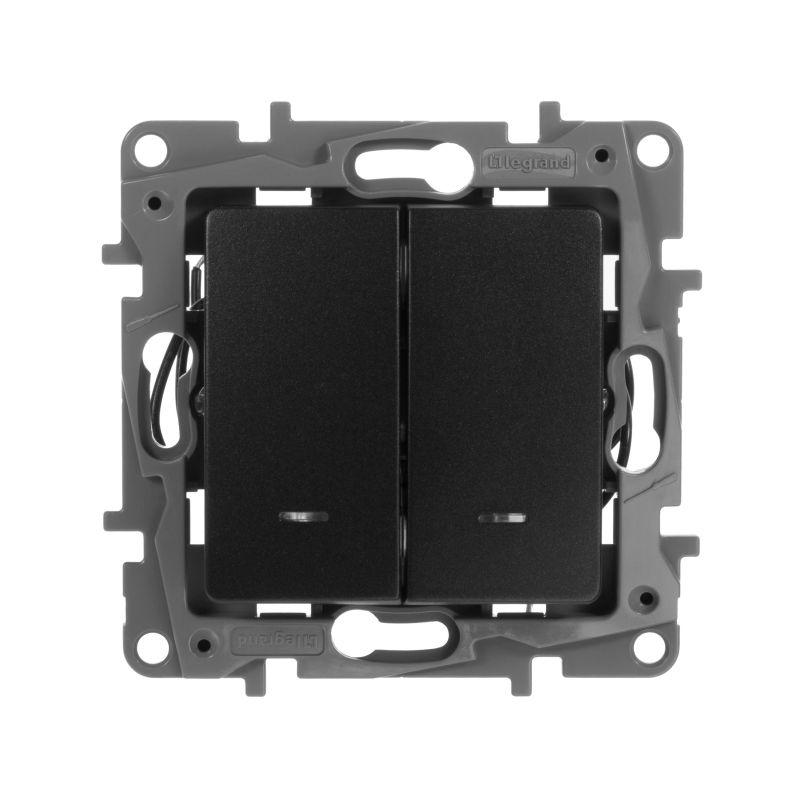 Выключатель с подсветкой двухклавишный ETIKA для скрытого монтажа, номинальный ток 10 А. Предназначен для управления двумя электрическими цепями.