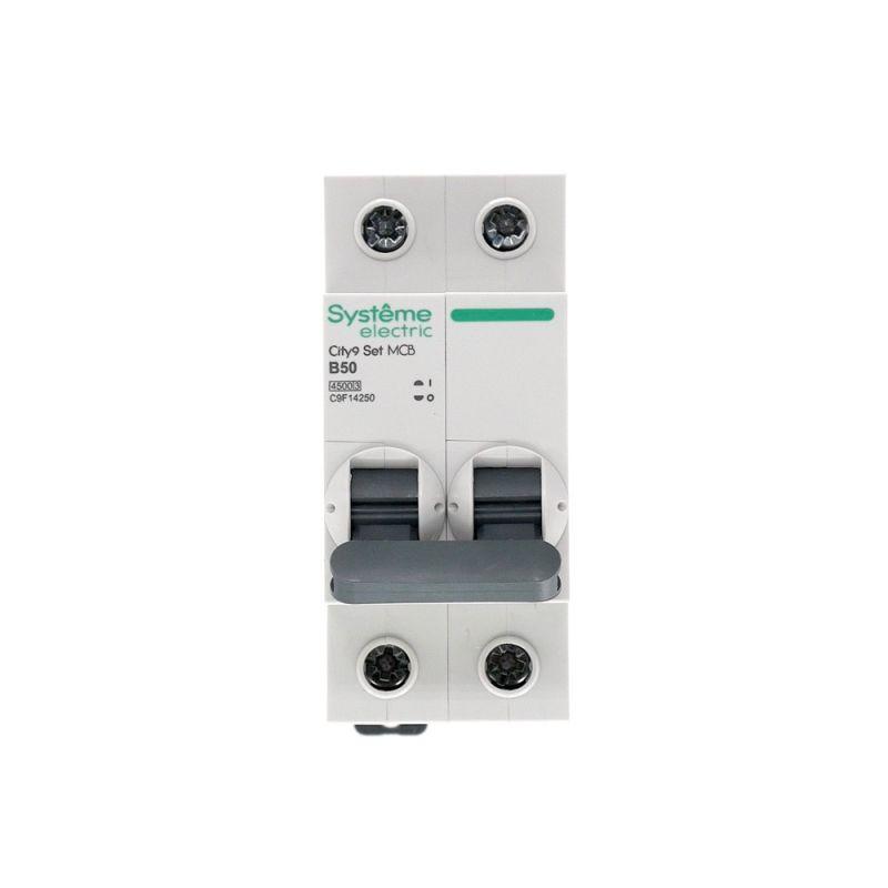 Автоматический выключатель серии City9 Set Systeme Electric, 2-полюсный, номинальный ток 50 А, характеристика B, Icn = 4.5 кА. Применяется в электрических сетях напряжением 230 В. Предназначен для защиты от перегрузок и токов короткого замыкания. Оснащен механизмом «мгновенной коммутации». Ударопрочный корпус из специального пластика с 6 металлическими заклепками. Безопасные клеммы исключают попадание кабелей в заклеммное пространство.