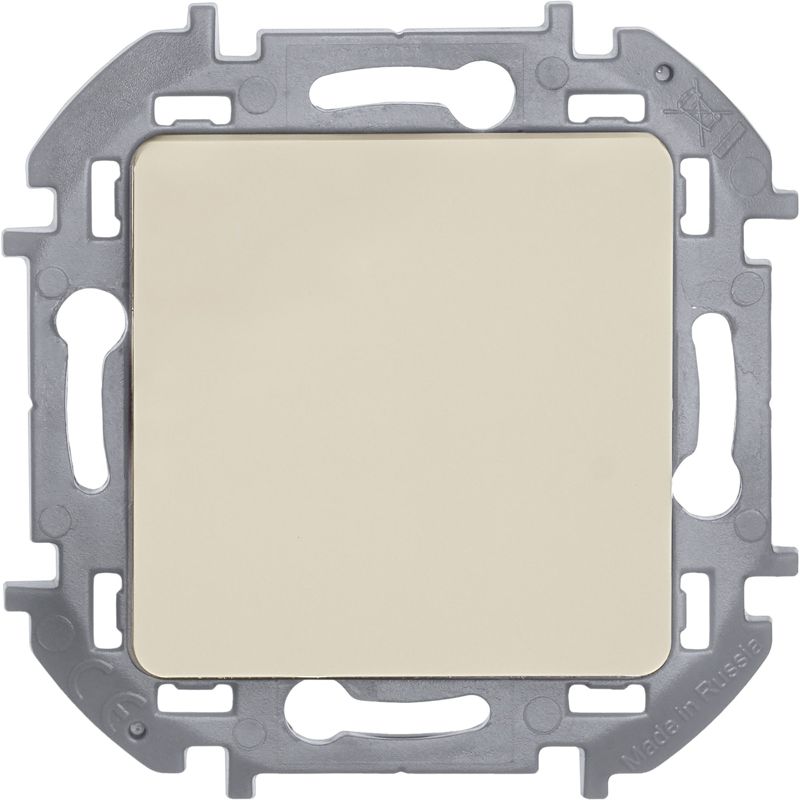 Выключатель кнопочный одноклавишный скрытого монтажа Inspiria, цвет "Слоновая кость", номинальный ток 6А, напряжение ~250В, безвинтовые зажимы. Устанавливается в жилых и общественных помещениях для управления импульсными реле, звонками и т.п.