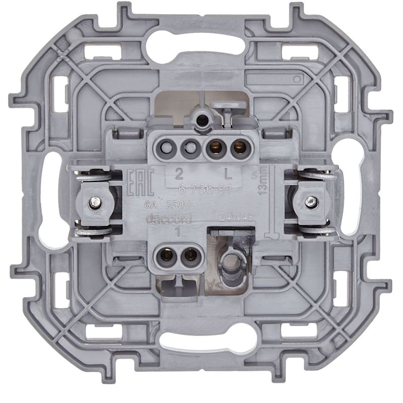 673691 | Выключатель кнопочный Inspiria 6А 250В без фиксации НО/НЗ механизм сл. кость Leg