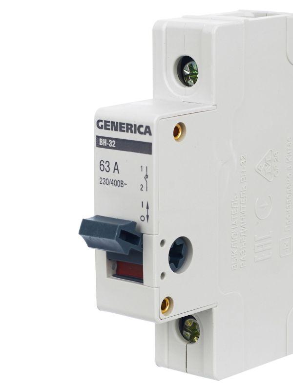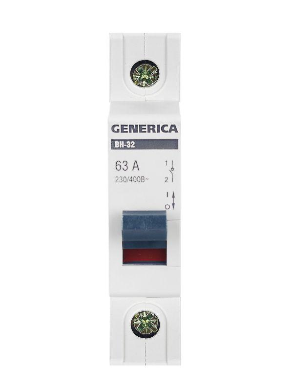 | Наименование производителя: | Выключатель нагрузки (мини-рубильник) ВН-32 1Р 63А GENERICA |