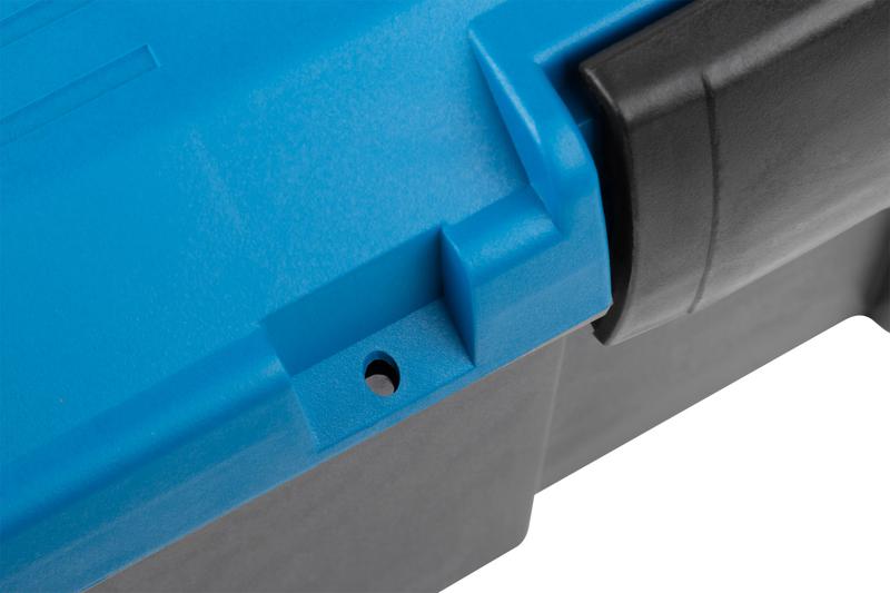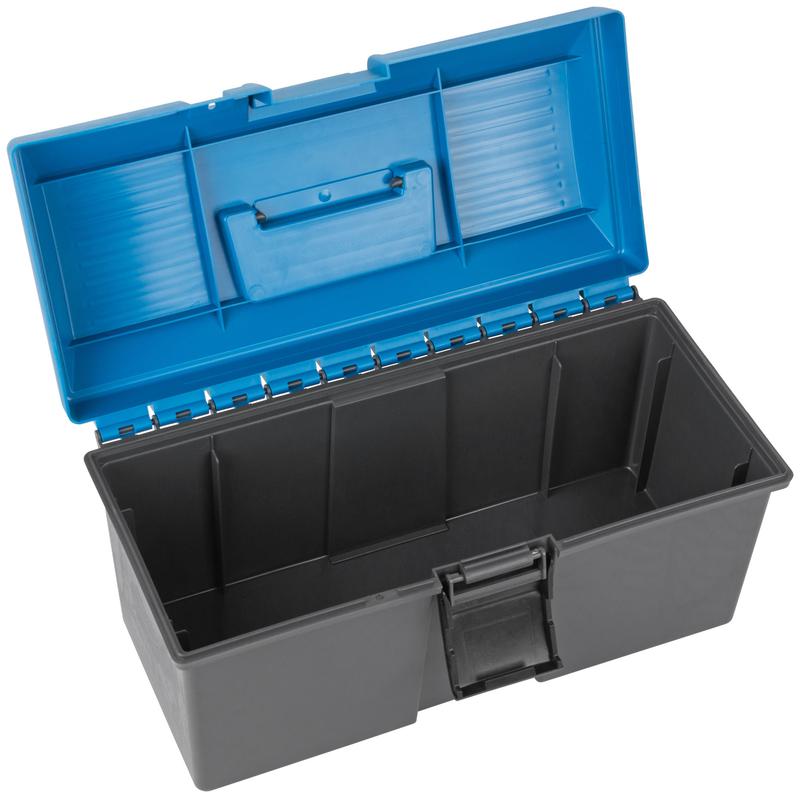 Ящик для инструмента MOS предназначен для транспортировки и хранения инструмента. Формовка крышки ящика позволяет поставить на ящик другие предметы. Может использоваться в качестве подставки. Ящик оснащен эргономичной рукояткой, которая в сложенном состоянии полностью помещается в крышку. Надежный пластиковый замок дает возможность открывать и закрывать ящик одной рукой. Специальные отверстия для установки навесного замка обеспечивают дополнительную безопасность содержимого ящика. Ребра жесткости в верхней части корпуса исключают неправильное примыкание крышки к корпусу, в петлях ящика — служат ограничителями и препятствуют излому, внутри корпуса и крышки — защищают от механического износа.
