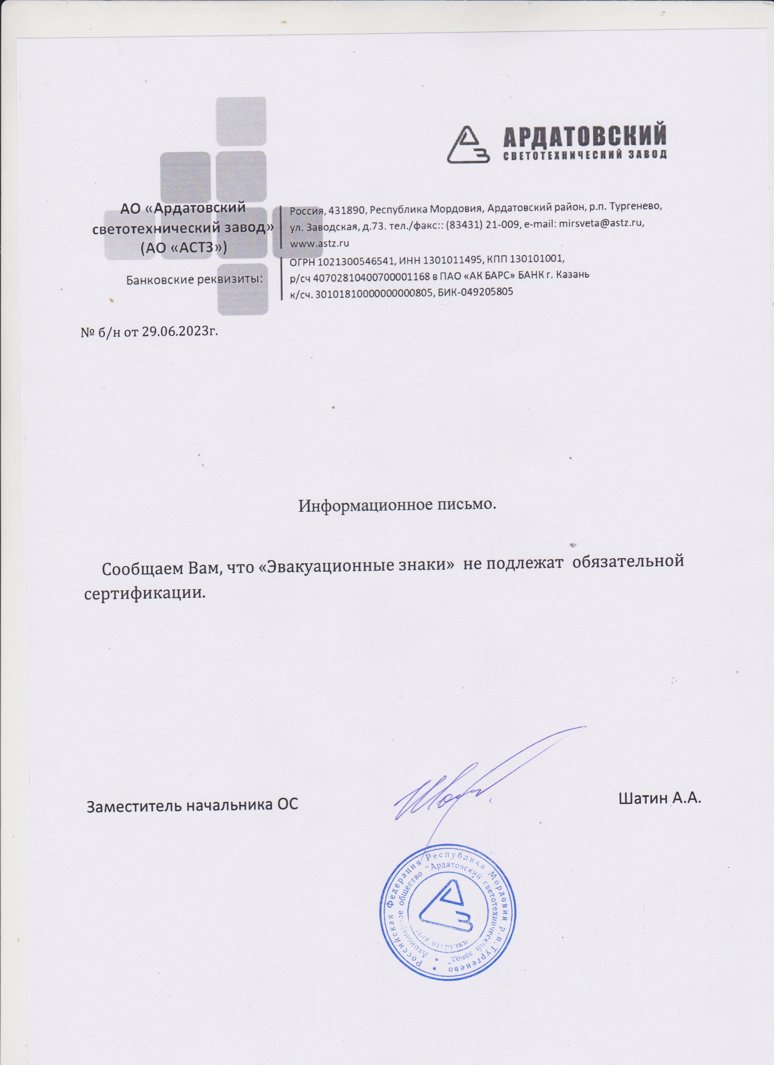 Знак эвакуационный "Выход" 150х300 Ардатов 1001150300