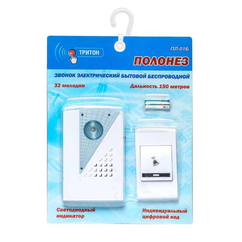 ПЛ-01Б | Звонок беспроводной Полонез 32 мел. 150м 2ААх1.5В Тритон